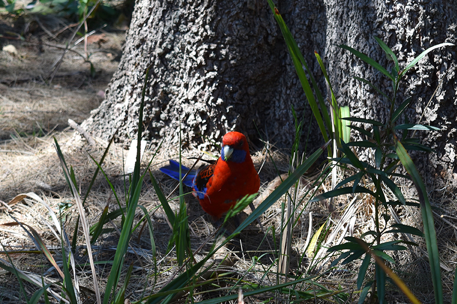 あまりに馴染みがない色なので初めてみたときは逃げ出したペットかと思ったカラフルな鳥たち。キャンベラ市内でも見かけますがここまで間近で見れたのはこのときだけ。