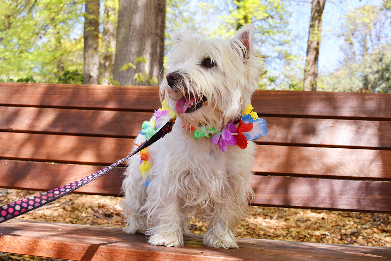 先ほど軽く触れて察した方もいると思いますが、犬連れが本当に多い!近隣の飼い犬、大集合状態。写真のようにおめかしされた犬もいたので、話しかけて写真を撮らせていただきました。