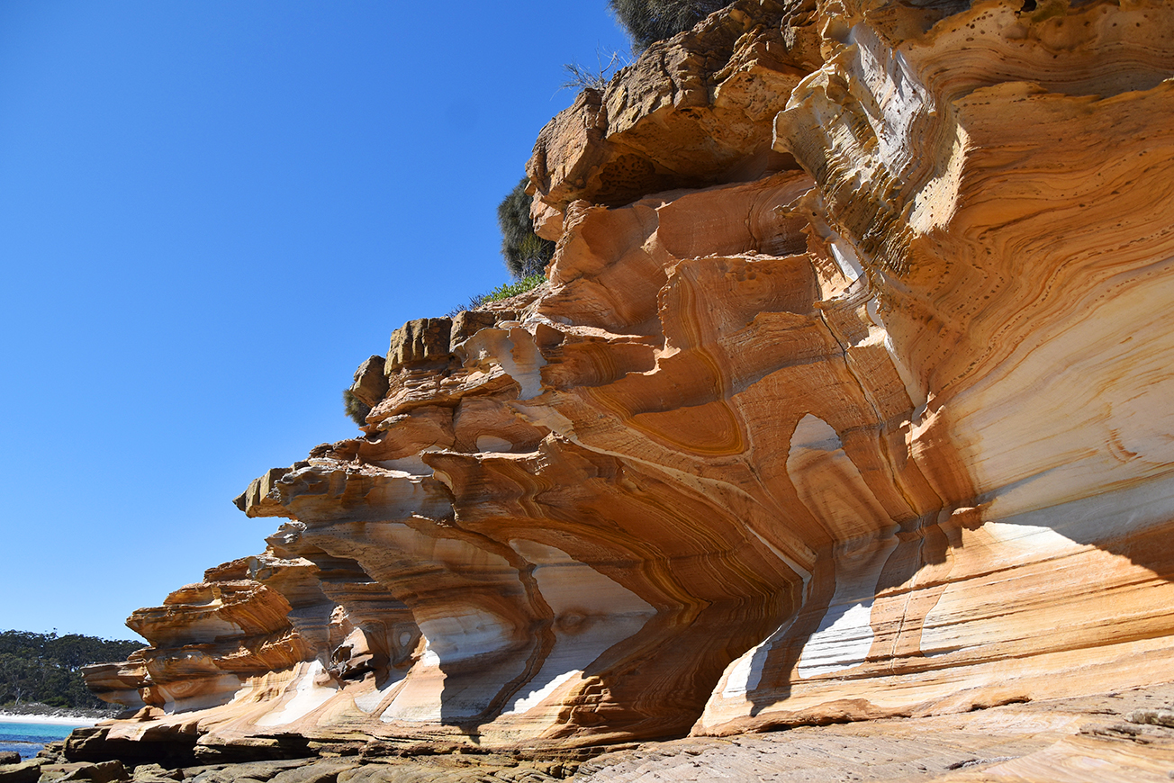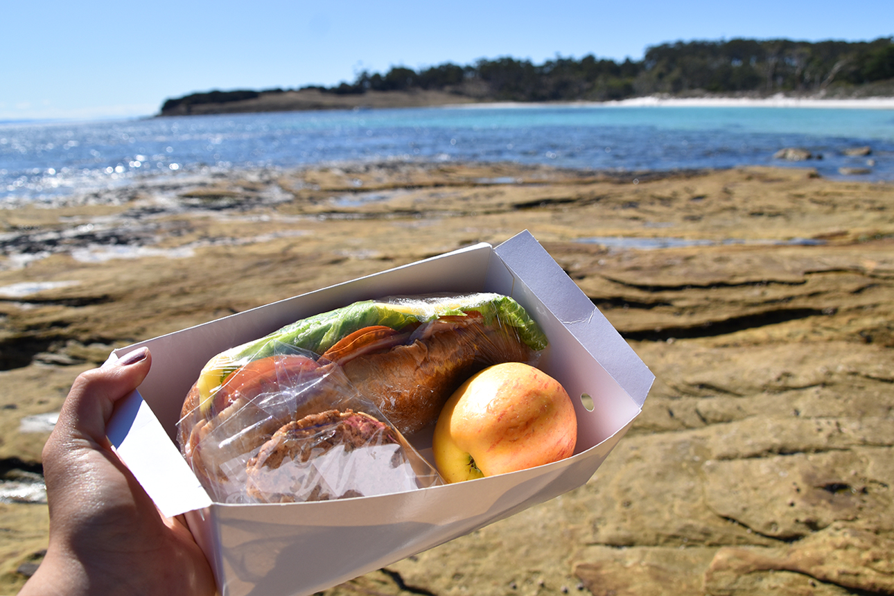動物に会ったり同じツアー仲間と会話しながら、浜辺を歩いた先にあるPainted Cliffsに到着。観光前にガイドさんからお弁当を受け取り、海を見ながら昼休憩。風が心地よかったです。