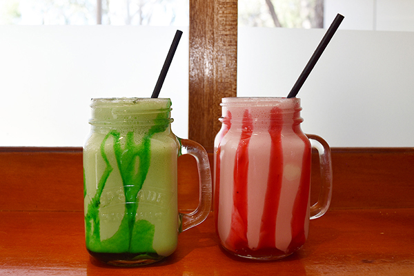 ツアーまで少し時間があったので、15分くらい歩いてリゾート内のカフェやレストランが集合しているエリアへ。Kulata Academy Cafeというカフェでサンドウィッチとシェイクを注文。写真の緑はライム、ピンクは確かストロベリー味。このエリアに着くまで軽く迷子になったこともあり既に疲れが出てたので丁度よかったです。