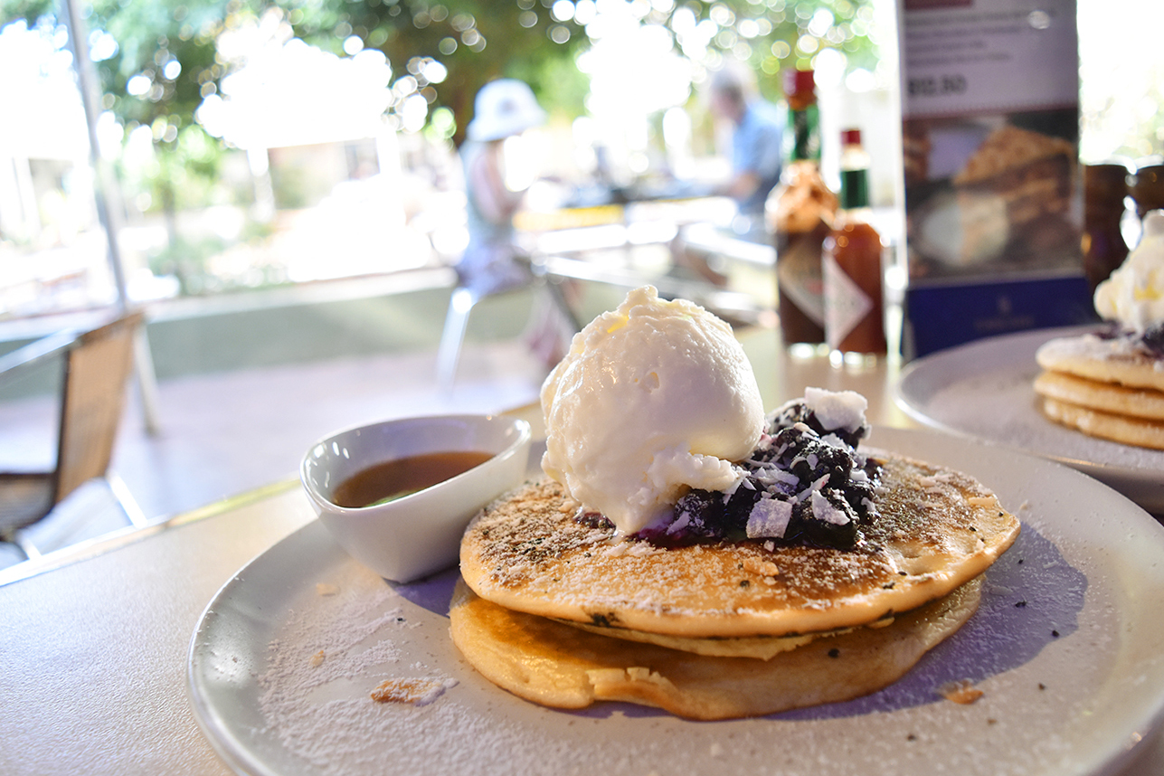 Gecko's Cafeにてパンケーキを注文。$18-25と少し高めですが、立地を考えたら妥当な価格と思います。優雅な朝を迎えました。すでに開店しているショップもあったのでお土産を購入、ホテルに戻りチェックアウト。